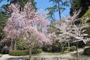 桜の満開の時期にはライトアップや、期間限定でかがり火も焚かれ、夜桜を見ながらの散策はとても幻想的で素敵です。