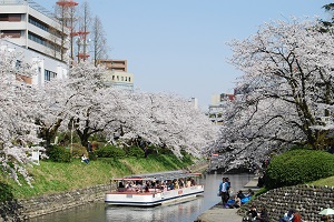 桜が見事な富山市民の憩いの場「松川べり」
