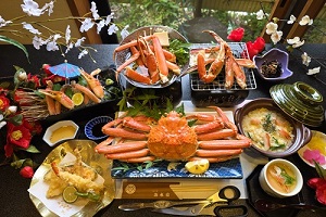 鳥取で20品のカニ料理の昼食