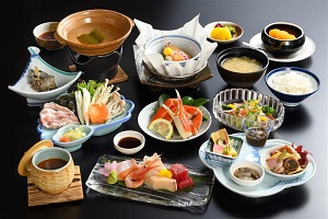 ホテルでは、新鮮な魚介類、大自然の大佐渡山系で育つ山の食材、目の前で採れる海藻類、出来る限り素材を活かしたお料理を提供しています。