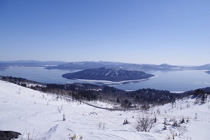 標高525mの頂上からは、眼下に世界第2位の大きさのカルデラ湖・屈斜路湖や、今なお噴煙を吐く硫黄山が、晴れた日には遠くに知床連峰や大雪の峰々がつらなる壮大なパノラマが広がります。