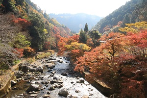 清滝川の渓谷・錦雲渓では、せせらぎに耳を傾けながら、色づき始めたモミジを鑑賞♪