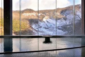 登別を代表するホテル「第一滝本館」は、地獄谷の豊富な源泉を持ち、男女合わせて1,500坪の大浴場には35もの湯船が点在します。