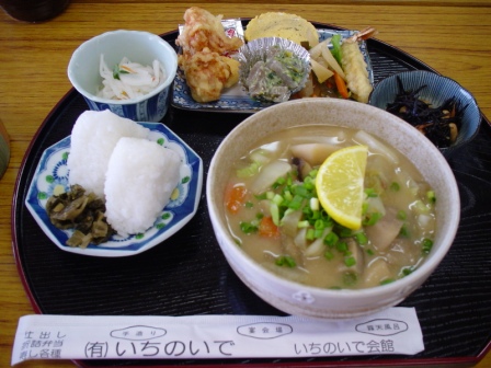 食事は大分名物のだご汁定食がいただけます。温泉は食事をしたお客しか入れません。