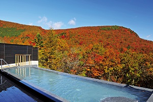 標高約950mに位置する「あだたら山 奥岳の湯」は、露天風呂から春の新緑や秋の紅葉が絶景の山並みを見渡せ、開放感あふれる湯浴みが楽しめます。