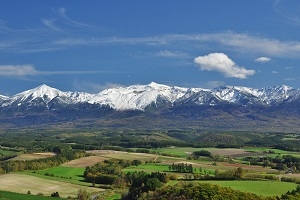 十勝岳連峰と美瑛の丘を見渡せる深山峠展望台