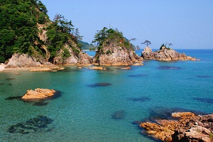 浦富(うらどめ)海岸は日本海の荒波によって形作られた壮大な海食地形をしています。