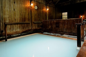 38度の霊泉と言われる下の湯と42度の白濁した上の湯の泉質の異なる二つの湯を楽しめる大浴場は秘湯ムード満点♪