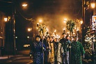 観光船から青い光の球を湖に流したあとは「厄除けのタイマツ」をもってアイヌの方々と一緒にアイヌコタンへと向かいます。