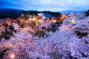 春には、夜間の特別拝観が開催され、回遊式庭園のライトアップした桜や京都の景色を楽しむことができます。