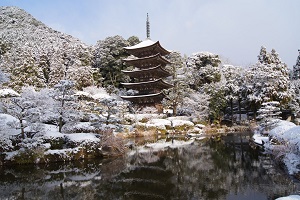 1月~2月は雪が降ると、写真のように雪をかぶった庭が水墨画のような美しい風景をつくりだします。