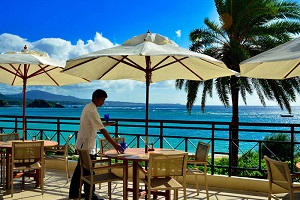 テラス席では美しい海を眺めながら食事が楽しめます。