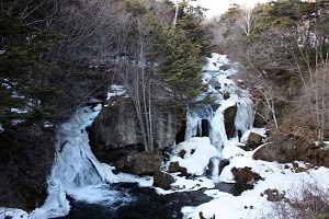 竜頭滝(りゅうずのたき)は、男体山の噴火によってできた溶岩の上を約210メートルにわたって流れ落ち、幅約10mほどの階段状の岩場を勢いよく流れる渓流瀑です。