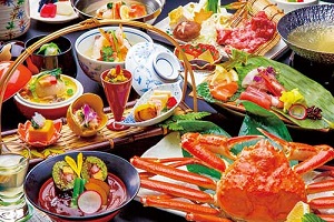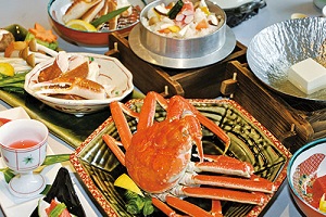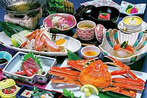 (かに刺し・姿ずわいがに一杯・かにの陶板焼・かにすき鍋・かに天麩羅・かに身入り茶碗蒸し・かに雑炊など)