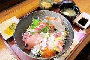 道の駅「萩しーまーと」では、近海でとれる地魚の海鮮丼など、新鮮なさかな料理がいただけます。