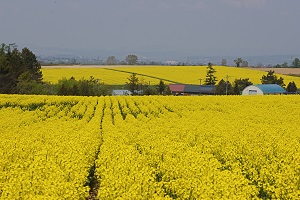 滝川市の菜の花畑は日本有数の作付面積を誇り、毎年5月下旬から6月上旬にかけて見事な黄色いじゅうたんが広がっています。