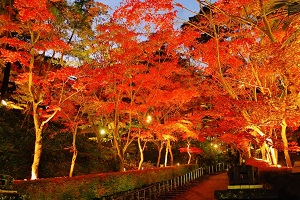 夜間はライトアップも行なわれていて、幻想的なもみじの様子を見ることができます。