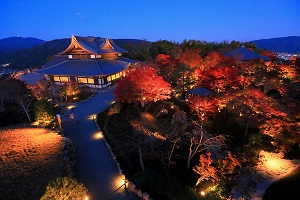 秋には、夜間の特別拝観が開催され、回遊式庭園のライトアップした紅葉や京都の景色を楽しむことができます。
