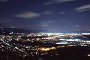 善光寺平と呼ばれる千曲川に沿った長野盆地を見渡すことができる姨捨(おばすて)駅。