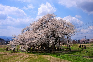 4月中旬に開花するため、別名「種蒔桜」とも呼ばれ、この桜の開花を見て作物の種を蒔く時期をきめていたといわれます。