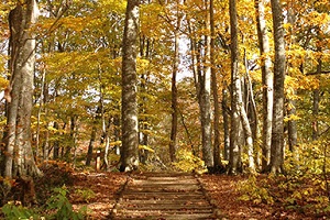白神山地の世界遺産核心地域と同様のブナの森を体感できる場所です。