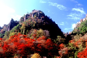 山国川支流の山移川の渓谷には奇岩奇峰が林立し、美しい景観を見せてくれます。