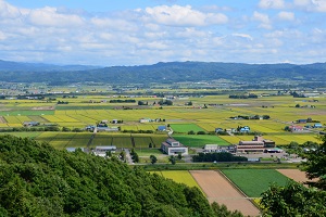 野菜づくりや酪農がさかんな由仁町は、北海道らしい広々とした畑や牧場が続きます。