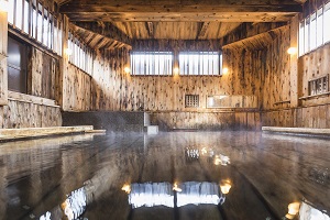 こじんまりとして古びた雰囲気を残した「久安の湯」、天井が高く泉のせせらぎのような響きを奏でる出湯の「泉響の湯」があり、ブナの木のどっしりした湯船に浸かってのんびりと温泉旅館の風情を堪能できます。