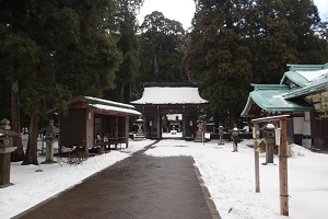 高さ約11mの大鳥居(重要文化財)は春日大社(奈良県)・厳島神社(広島県)と並ぶ日本三大木造大鳥居の一つ。
