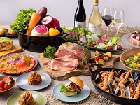 ディナーは、旬の⾷材を使用し、⾷材本来の⾃然な味わいを引き出した種類豊富でモダンな料理をビュッフェ形式。