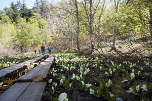 尾瀬の短いシーズンの幕開けにふさわしい純白の姿「水芭蕉」が咲くのは5月下旬~6月中旬。