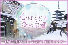 定期観光バス「60回記念 京の冬の旅 仏教世界の美をめぐる」で冬の京都をめぐる観光プランです。初日は五重塔(国宝)初層内部に入れる東寺、極彩色の仏像群 仁和寺観音堂、「心和の庭」光清寺の特別公開を"おこしバス"でめぐります。2日目は北野天満宮を参拝して祇園白川を散策しましょう。