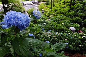 境内の緩やかな斜面に見渡すかぎりアジサイが広がる光景は圧巻!