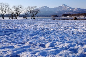 桧原湖(ひばらこ)は、磐梯高原の中心にある、裏磐梯最大の湖です。 磐梯山の噴火により、泥流が谷をふさいで自然にできた美しい湖です。 冬場の氷結した湖上でのワカサギ釣りは、檜原湖の冬の風物詩として人気です。 ワカサギ釣りを楽しむ人々の、色とりどりのテントが氷結した真っ白い湖上を彩ります。