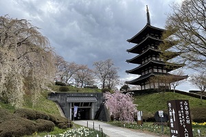 安達ヶ原ふるさと村は、江戸時代の武家屋敷や明治時代の豪農の館、養蚕農家などが移築再現された、二本松の伝統的生活文化を紹介する公園です。 春には桜まつりが開催され、五重塔を背景にライトアップされた桜が楽しめます。 安達ヶ原ふるさと村のホームページはこちら