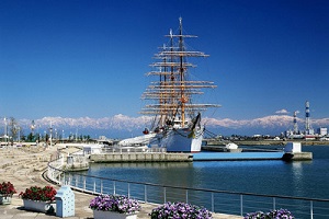 富山新港の「きっときと市場」の近くに、大きな帆船が係留されている海王丸パークがあります。
